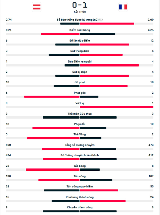 Tỷ số chung cuộc: Áo 0-1 Pháp (H1: 0-1)