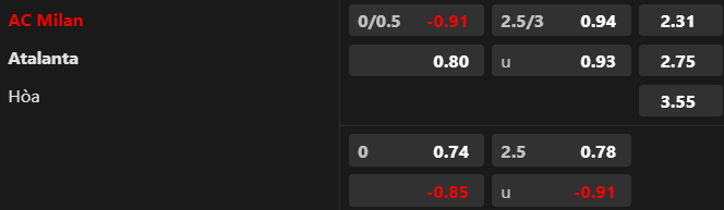 Trong bối cảnh vô cùng tự tin, Atalanta hoàn toàn có thể hy vọng giành 3 điểm trên sân AC Milan để trở lại top 4. Trên sân khách, đội bóng áo xanh đen thi đấu khá tốt khi thắng kèo 4/5 trận gần đây.
