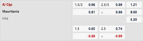 Lựa chọn tốt nhất: Ai Cập -1 3/4 cả trận
