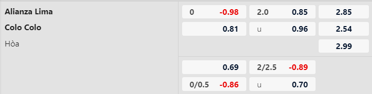 - Alianza Lima hòa 2, thua 3 trong 5 trận gặp Colo Colo gần đây.