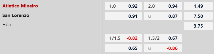 Lựa chọn tốt nhất: Atletico Mineiro -1 cả trận