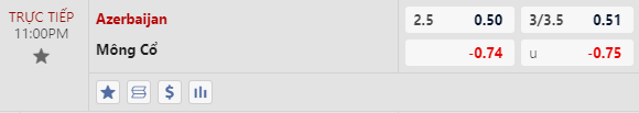 Mức chấp sâu 0:2 1/2 cho thấy tương quan chênh lệch giữa đôi bên. Azerbaijan cho thấy sự tiến bộ nhiều thời gian gần đây và họ tỏ ra đáng tin cậy với 5 lần thắng theo châu Á trong 6 trận mới nhất. Mông Cổ có lực yếu và thua 3 trận liên tiếp vừa qua (thua kèo 2 lần).