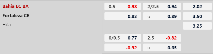Mức chấp hòa cân tiền của Bahia trận này nhỉnh hơn chút so với kèo chấp 1/4 họ từng sở hữu ở lần tiếp Fortaleza trên sân nhà mới nhất. Bahia hiện chơi ổn và đáng tin về góc độ châu Á. CLB này có 5 lần thắng kèo và chỉ thua tỷ lệ 1 trong số 7 trận gần đây.