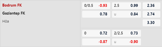 Với lợi thế sân nhà, Bodrumspor chấp Gaziantep 1/4 bàn cả trận. Chắc chắn đội chủ nhà sẽ đặt mục tiêu kéo dài thời gian trụ hạng của đội trong mùa giải này và chiến thắng trong ngày ra quân trước Gaziantep sẽ là khởi đầu hoàn hảo. Tuy nhiên, Gaziantep lại là câu lạc bộ phần nào nhỉnh hơn so với Bodrumspor. Như đã nhận định, Gaziantep đang có mạch 3 trận thắng liên tiếp. Theo đó, kèo dưới nên được mạnh dạn theo cược.