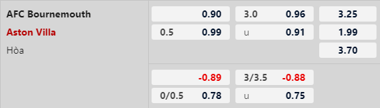 Sàn giao dịch châu Á ghi nhận mức kèo Aston Villa chấp 0:1/2, tỷ lệ đã xuất hiện ở chuyến làm khách gần nhất của họ tới sân Bournemouth mùa giải trước và nhận thất bại 0-2.