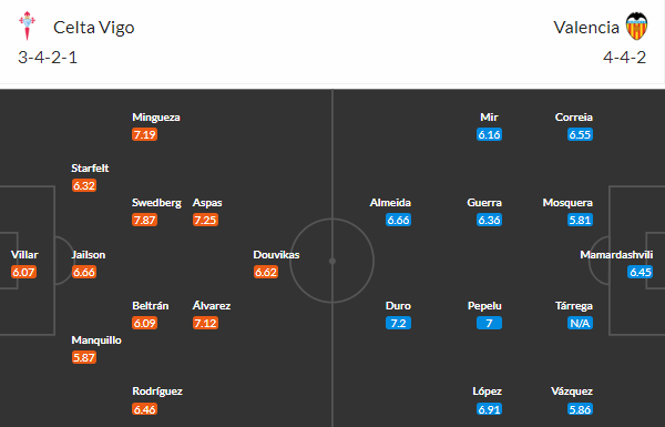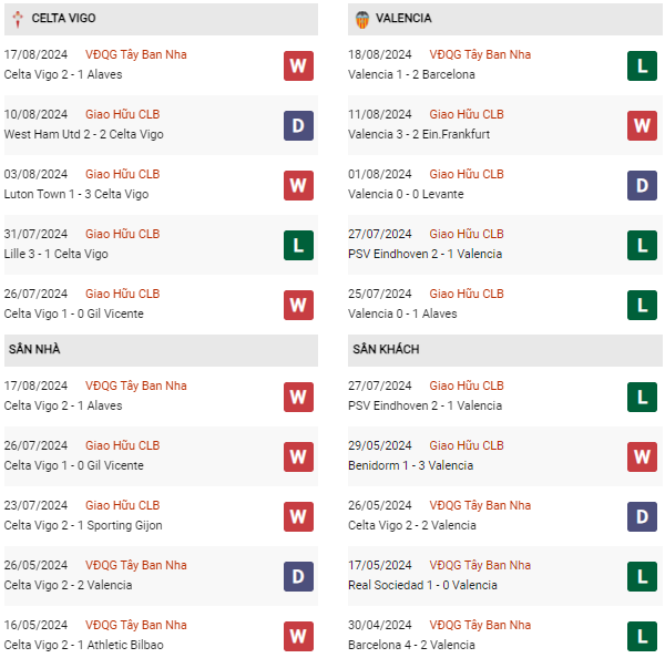 - Trên sân nhà, Celta Vigo thắng 3, thua 4 trước Valencia.