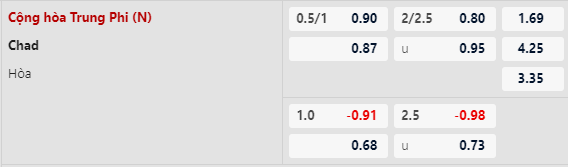 Kèo các nhà cái đang để CH Trung Phi chấp -3/4 là khá hấp dẫn, khi mà họ có trình độ vượt trội. Cùng với đó thì CH Trung Phi cũng có lợi thế khi được thi đấu trên sân nhà. Trong đi khó, Chad gần như được coi là ngân hàng điểm cho các đội, 2 trận vừa qua họ cũng đều thua cách biệt từ 2 bàn trở lên. Chọn CH Trung Phi là rất ngon ăn.