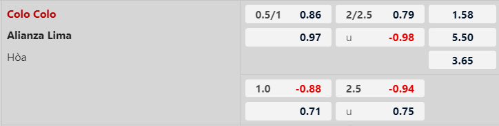 Nhận định soi kèo Colo Colo vs Alianza Lima, 07h30 ngày 24/4, bảng A Copa Libertadores, sân Monumental David Arellano. Kèo các nhà cái đang để Colo Colo chấp 1 hòa có vẻ hơi sâu, khi mà 3 chiến thắng gần nhất của Colo Colo đều không có cách biệt quá 1 bàn.