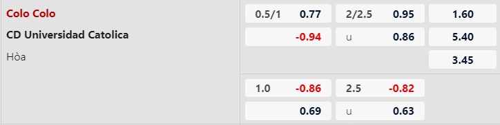 Lựa chọn tốt nhất: Colo Colo -3/4 cả trận