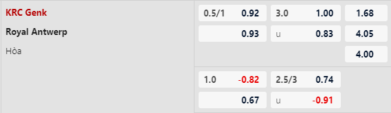 Chủ nhà Genk ghi trung bình 1,8 bàn mỗi khi gặp Royal Antwerp trong khi với đối thủ con số này là 1,4 bàn. Số bàn thắng trung bình trong các lần gặp nhau giữa hai đội đạt 3,2 bàn/trận. Từ đó khả năng cao sẽ có rất nhiều bàn thắng được ghi và nổ Tài ở trận đấu này.