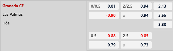 Sàn giao dịch châu Á ghi nhận mức kèo Granada chấp 1/4 trái, tỷ lệ mà 2 trận đối đầu gần nhất xuất hiện họ đều đánh bại Las Palmas. Tuy nhiên, kịch bản này nhiều khả năng sẽ không thể tái diễn đêm nay khi phong độ hiện tại của đội chủ nhà là quá tệ với 5/6 trận gần đây toàn thua theo cả chuyên môn và kèo châu Á. Thành tích này hoàn toàn trái ngược với Las Palmas, đội thua kèo 5/6 trận vừa qua.