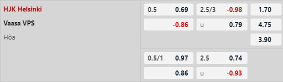HJK Helsinki thắng kèo 3 trong số 4 trận đối đầu gần nhất chạm mặt VPS Vaasa. Trên sân nhà, HJK Helsinki là tập thể tin tưởng khi thắng 3 trong số 4 trận sân nhà chính thức gần nhất. NHM cần biết VPS Vaasa là đội bóng để thua kèo ở vòng đấu mới đây tại giải VĐQG Phần Lan.