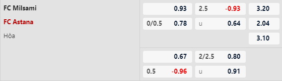 Milsami mang tới niềm vui cho giới đầu tư khi thắng theo châu Á tới 3 trong số 4 trận đấu mới đây có cược chấp. Trái lại, Astana vừa có mạch 6 trận đấu liên tiếp không thắng kèo trên sàn giao dịch châu Á.