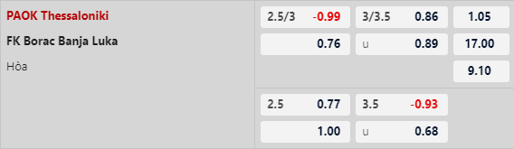 PAOK thắng 4 và thua 2 trong 6 trận sân nhà gần nhất và các trận thua của họ là trước Union SG và Hibernian. Trong khi đó, Borac Banja Luka thua 3/5 chuyến làm khách gần nhất và phải đối mặt với những đội yếu hơn khi so sánh với các đội mà PAOK phải đối mặt gần đây. Với tỷ lệ cược PAOK chấp Borac Banja Luka 2 3/4 bàn, kèo trên là sự lựa chọn phù hợp.