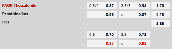 Lựa chọn tốt nhất: PAOK -3/4 cả trận
