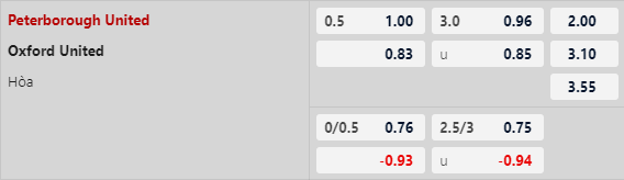 Peterborough thắng tới 3 trong số 4 trận đấu vừa rồi tiếp đón Oxford United trên sân nhà. Nếu xét theo TLCA, Peterborough sở hữu phong độ kèo ấn tượng khi thắng tới 6/9 trận đấu vừa rồi. Vì vậy, Peterborough là mã đầu tư đáng tin tưởng với kèo chấp -1/2 theo handicap.