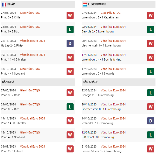 - Trên sân nhà, Pháp thắng 1, hòa 1 trước Luxembourg.
