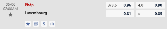 Với đẳng cấp, vị thế và chất lượng đội hình thuộc hàng tốt nhất hành tinh thời điểm hiện tại, việc tuyển Pháp được xếp kèo trên với tỷ lệ chấp cực lớn là điều hoàn toàn dễ hiểu. Tỷ lệ chấp được niêm yết lên đến -3 1/4 theo handicap. Pháp chưa từng thua trước Luxembourg trong quá khứ với 3 chiến thắng và chỉ 1 lần bị cầm hòa. Ở thời diểm hiện tại, dù tỷ lệ chấp là rất lớn thế nhưng Pháp vẫn thừa sức nhấn chìm Luxembourg và thắng luôn kèo đấu châu Á.