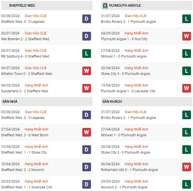 - Trên sân nhà, Sheffield Wed thắng 4, thua 2 trước Plymouth.