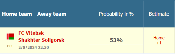 Được biết, Vitebsk chỉ có 15 bàn thắng, đồng thời thủng lưới 12 bàn thua sau 15 trận đã đá mùa này – trung bình mỗi trận của họ có không quá 2 bàn/trận. Shakhter Soligorsk là đội bóng có 14 bàn thắng sau 15 trận – có trung bình không quá 1 bàn/trận.