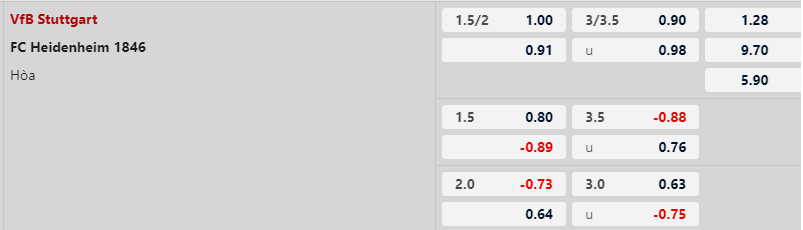 - 3 trận gần nhất tiếp đón Heidenheim trên sân nhà Stuttgart đều giành chiến thắng.