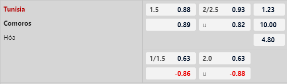 Tuy kèo chấp ở mức cao nhưng kèo tài xỉu hiện chỉ đang ở mức là 2 1/4. Trên sân nhà, Tunisia vẫn đang chơi khá chắc chắn ở các trận gần đây, trong khi Comoros có lẽ vẫn sẽ phải chủ động chơi phòng ngự trên sân khách, đây vẫn sẽ là trận đấu có ít bàn thắng được ghi.