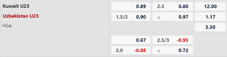 Trên sàn giao dịch, U23 Uzbekistan được xếp chiếu trên chấp tới -1 3/4 theo handicap với điểm ăn thấp. U23 Uzbekistan về cơ bản có đẳng cấp cao hơn nhiều so với U23 Kuwait. Họ cũng thể hiện điều đó qua trận mở màn khi thắng nhẹ nhàng U23 Malaysia 2-0, đội thậm chí còn được đánh giá cao hơn cả U23 Kuwait.
