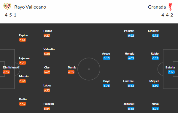 Tuy nhiên, Vallecano đã ghi được ít nhất 2 bàn thắng trong mỗi trận trong số 4 trận gần đây nhất gặp Granada (Thắng 3, Hòa 1), giúp họ có chuỗi 10 trận bất bại trong các trận đối đầu với đối thủ này. Sau khi giành chiến thắng 2-0 trong trận đấu lượt đi vào tháng 8, chiến thắng tới đây sẽ giúp Vallecano có lần đầu tiên thắng một đối thủ ở cả hai lượt trận thuộc mùa giải năm nay.
