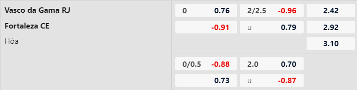 Vasco da Gama chỉ thắng có 2 lần ở 9 trận đấu mới đây chạm mặt Fortaleza. Vasco da Gama không thắng kèo tới 6/8 trận đấu mới đây. Trong khi đó, Fortaleza vừa có mạch 4 trận đấu bất bại kèo.