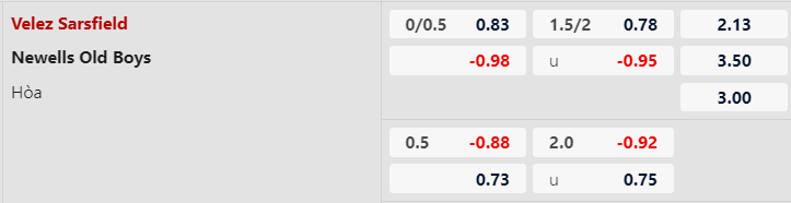 Lựa chọn tốt nhất: Velez Sarsfield -1/4 cả trận