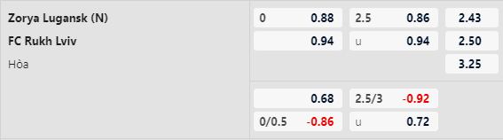 7/8 trận vừa qua của Zorya Luhansk kết thúc trận đấu nhiều hơn 2,5 bàn. Trong khi đó, 4/5 trận hành quân xa nhà của Rukh Lviv khép lại trận đấu trong những cơn mưa bàn thắng. Với những con số thống kê này trận đấu giữa 2 đội trong ngày hôm nay sẽ hứa hẹn có nhiều bàn thắng được ghi giống như 6/10 lần đụng độ trong quá khứ.